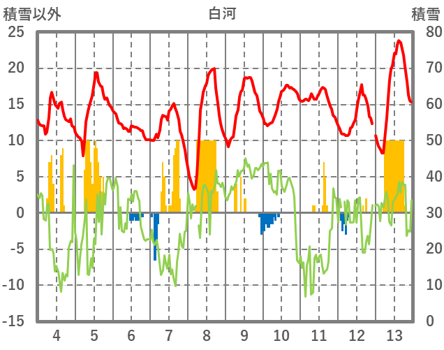 | 日 | 時 | 気温 | 降水 | 風向/風速 | 日照 | 積雪 | 降雪 |