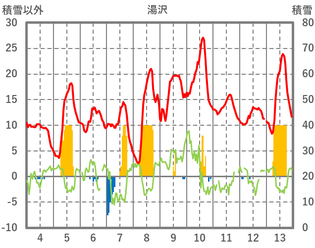 | 日 | 時 | 気温 | 降水 | 風向/風速 | 日照 | 積雪 | 降雪 |
