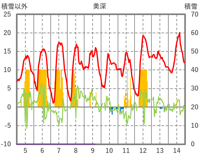 | 日 | 時 | 気温 | 降水 | 風向/風速 | 日照 | 積雪 | 降雪 |