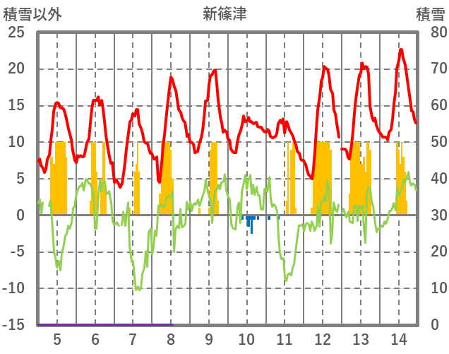 | 日 | 時 | 気温 | 降水 | 風向/風速 | 日照 | 積雪 | 降雪 |