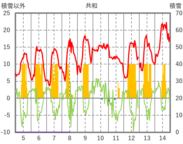 | 日 | 時 | 気温 | 降水 | 風向/風速 | 日照 | 積雪 | 降雪 |
