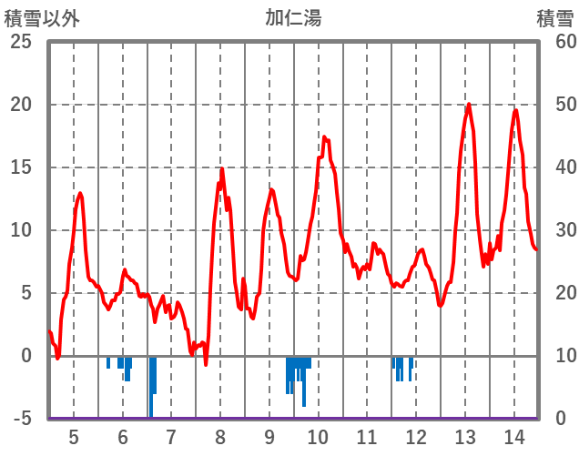| 日 | 時 | 気温 | 降水 | 風向/風速 | 日照 | 積雪 | 降雪 |