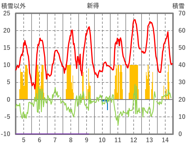 | 日 | 時 | 気温 | 降水 | 風向/風速 | 日照 | 積雪 | 降雪 |