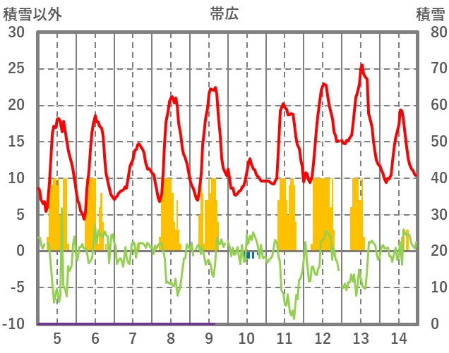 | 日 | 時 | 気温 | 降水 | 風向/風速 | 日照 | 積雪 | 降雪 |