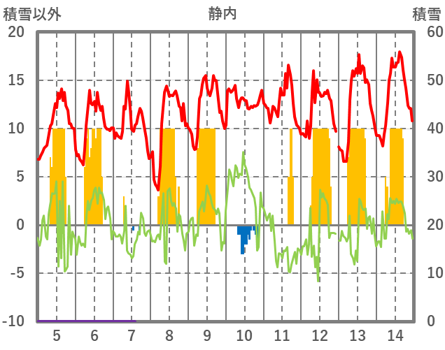| 日 | 時 | 気温 | 降水 | 風向/風速 | 日照 | 積雪 | 降雪 |