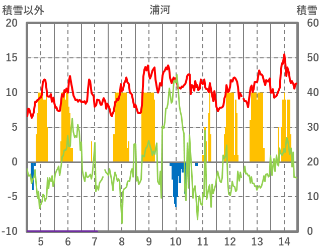 | 日 | 時 | 気温 | 降水 | 風向/風速 | 日照 | 積雪 | 降雪 |