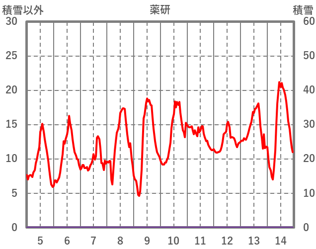 | 日 | 時 | 気温 | 降水 | 風向/風速 | 日照 | 積雪 | 降雪 |