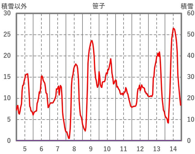 | 日 | 時 | 気温 | 降水 | 風向/風速 | 日照 | 積雪 | 降雪 |