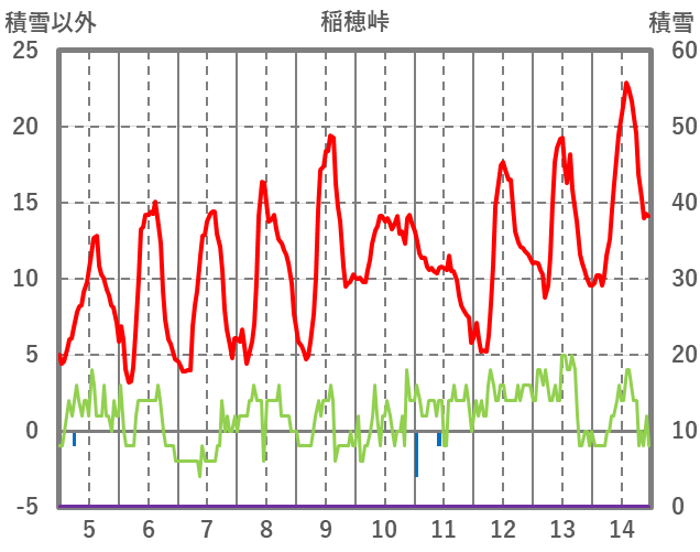 | 日 | 時 | 気温 | 降水 | 風向/風速 | 日照 | 積雪 | 降雪 |