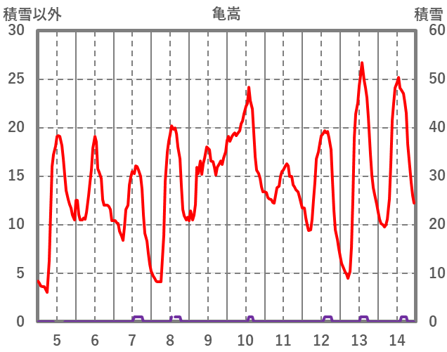 | 日 | 時 | 気温 | 降水 | 風向/風速 | 日照 | 積雪 | 降雪 |