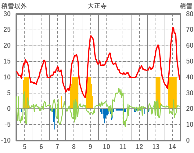| 日 | 時 | 気温 | 降水 | 風向/風速 | 日照 | 積雪 | 降雪 |