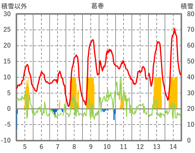 | 日 | 時 | 気温 | 降水 | 風向/風速 | 日照 | 積雪 | 降雪 |