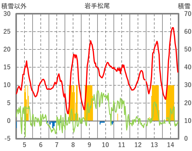 | 日 | 時 | 気温 | 降水 | 風向/風速 | 日照 | 積雪 | 降雪 |