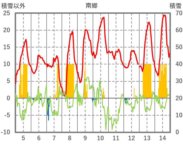 | 日 | 時 | 気温 | 降水 | 風向/風速 | 日照 | 積雪 | 降雪 |