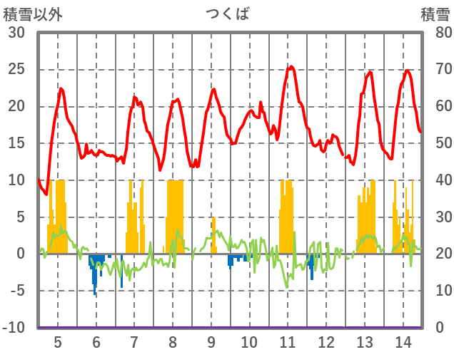 | 日 | 時 | 気温 | 降水 | 風向/風速 | 日照 | 積雪 | 降雪 |
