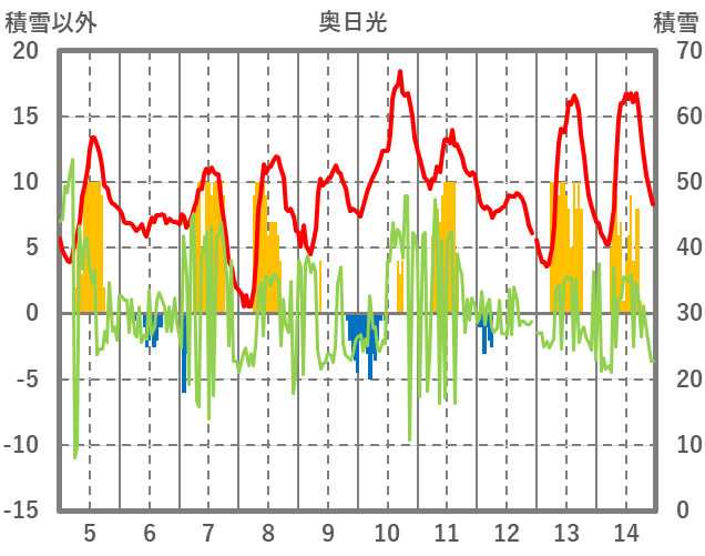 | 日 | 時 | 気温 | 降水 | 風向/風速 | 日照 | 積雪 | 降雪 |