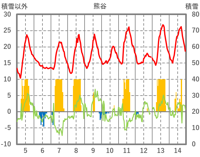 | 日 | 時 | 気温 | 降水 | 風向/風速 | 日照 | 積雪 | 降雪 |