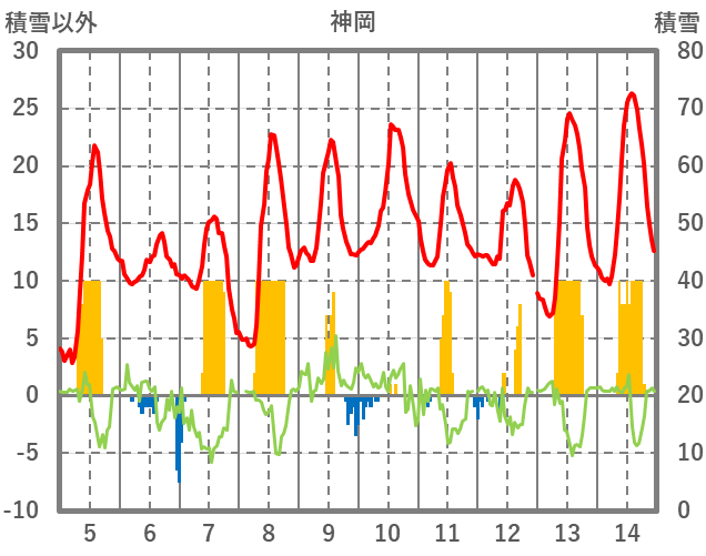 | 日 | 時 | 気温 | 降水 | 風向/風速 | 日照 | 積雪 | 降雪 |