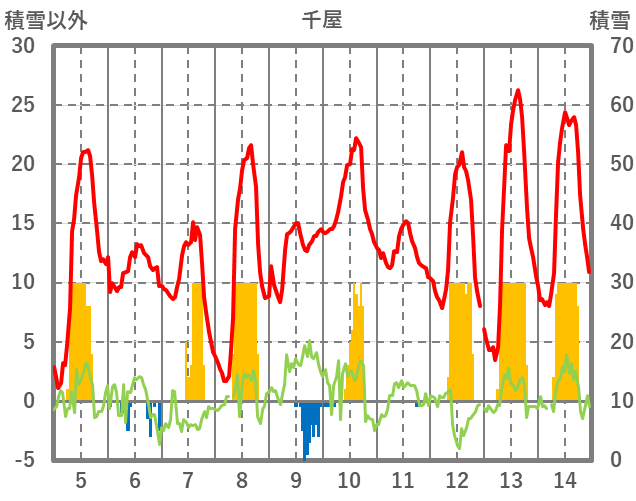 | 日 | 時 | 気温 | 降水 | 風向/風速 | 日照 | 積雪 | 降雪 |