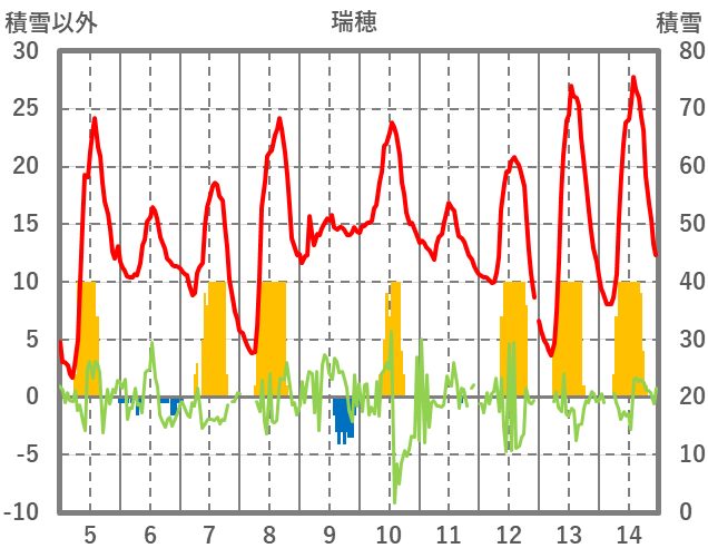 | 日 | 時 | 気温 | 降水 | 風向/風速 | 日照 | 積雪 | 降雪 |