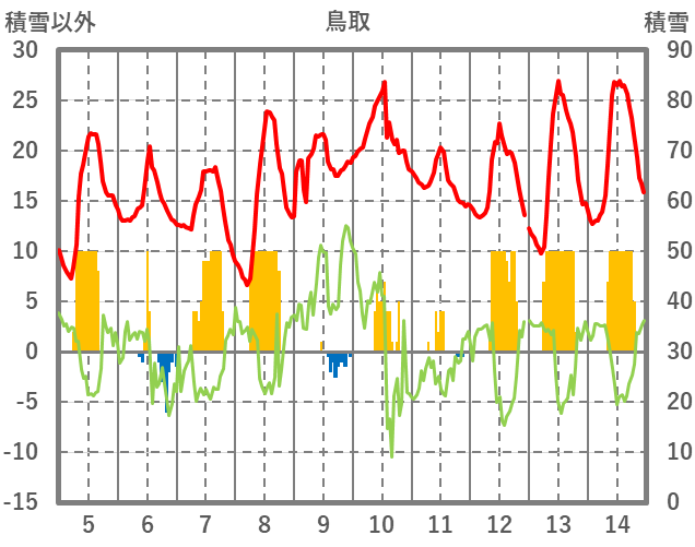 | 日 | 時 | 気温 | 降水 | 風向/風速 | 日照 | 積雪 | 降雪 |