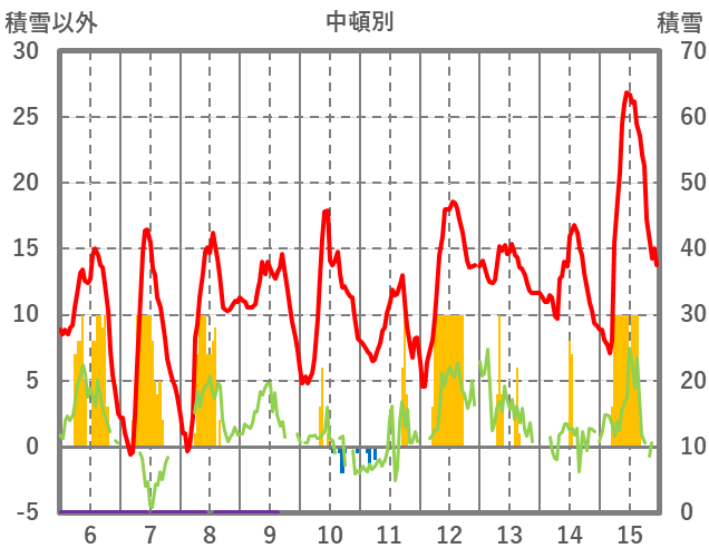 | 日 | 時 | 気温 | 降水 | 風向/風速 | 日照 | 積雪 | 降雪 |