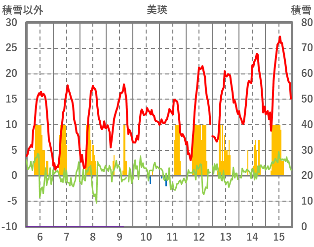 | 日 | 時 | 気温 | 降水 | 風向/風速 | 日照 | 積雪 | 降雪 |
