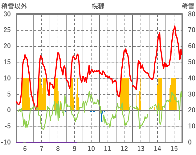 | 日 | 時 | 気温 | 降水 | 風向/風速 | 日照 | 積雪 | 降雪 |