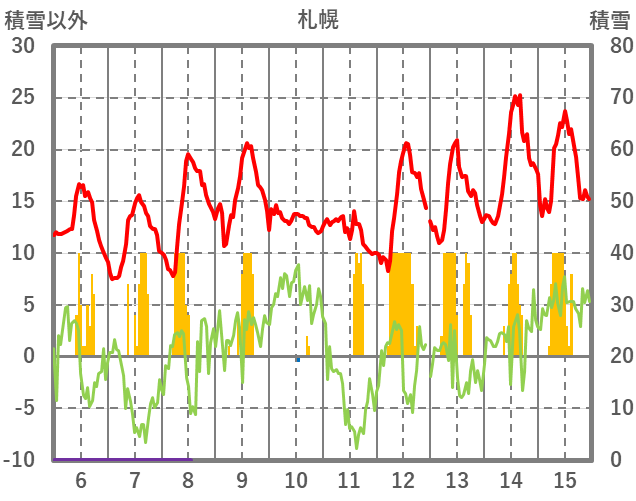 | 日 | 時 | 気温 | 降水 | 風向/風速 | 日照 | 積雪 | 降雪 |