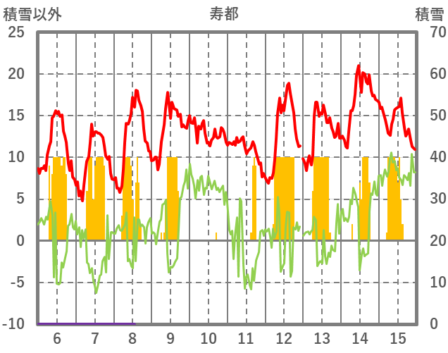 | 日 | 時 | 気温 | 降水 | 風向/風速 | 日照 | 積雪 | 降雪 |
