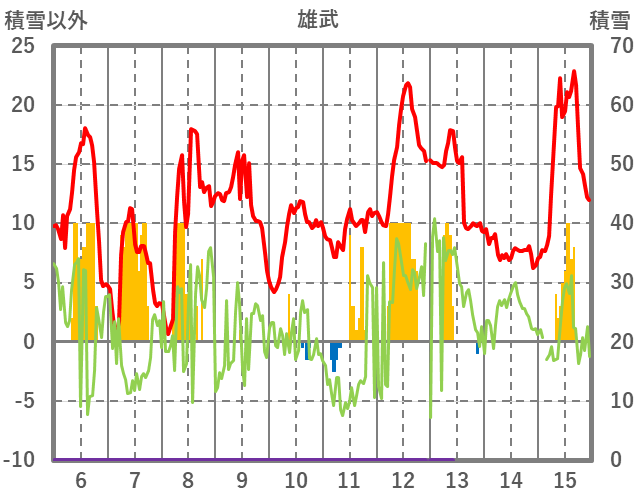 | 日 | 時 | 気温 | 降水 | 風向/風速 | 日照 | 積雪 | 降雪 |