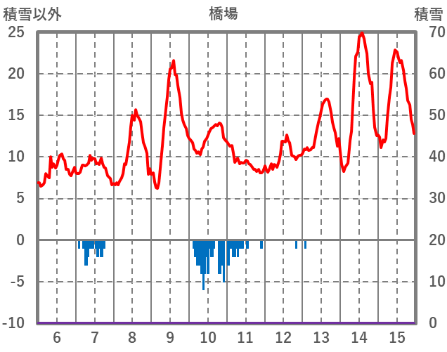 | 日 | 時 | 気温 | 降水 | 風向/風速 | 日照 | 積雪 | 降雪 |