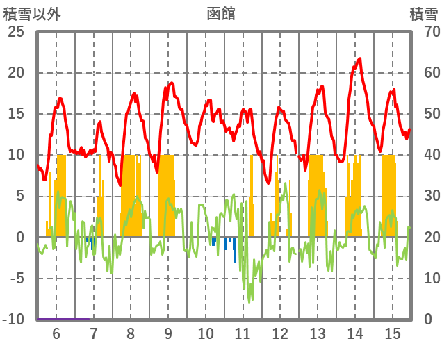 | 日 | 時 | 気温 | 降水 | 風向/風速 | 日照 | 積雪 | 降雪 |
