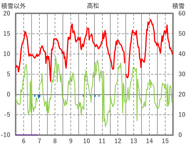 | 日 | 時 | 気温 | 降水 | 風向/風速 | 日照 | 積雪 | 降雪 |