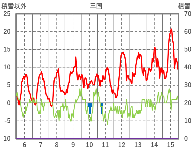 | 日 | 時 | 気温 | 降水 | 風向/風速 | 日照 | 積雪 | 降雪 |
