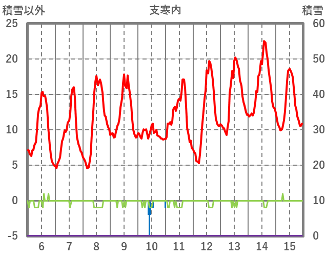 | 日 | 時 | 気温 | 降水 | 風向/風速 | 日照 | 積雪 | 降雪 |