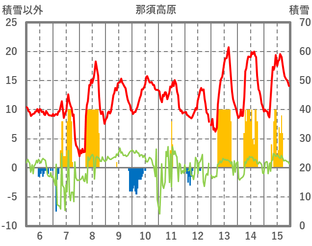 | 日 | 時 | 気温 | 降水 | 風向/風速 | 日照 | 積雪 | 降雪 |