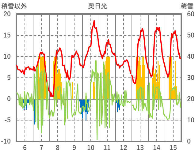 | 日 | 時 | 気温 | 降水 | 風向/風速 | 日照 | 積雪 | 降雪 |
