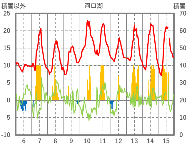| 日 | 時 | 気温 | 降水 | 風向/風速 | 日照 | 積雪 | 降雪 |