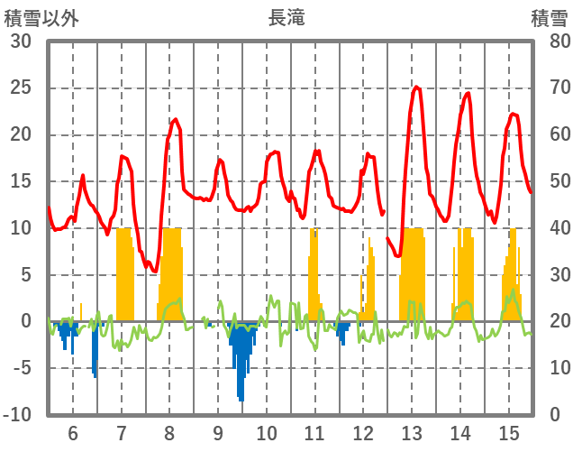 | 日 | 時 | 気温 | 降水 | 風向/風速 | 日照 | 積雪 | 降雪 |