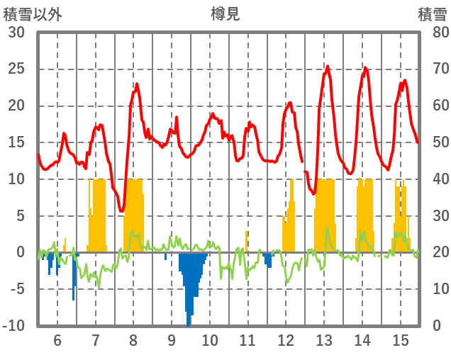| 日 | 時 | 気温 | 降水 | 風向/風速 | 日照 | 積雪 | 降雪 |