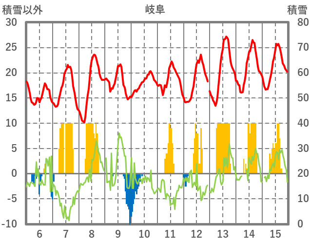 | 日 | 時 | 気温 | 降水 | 風向/風速 | 日照 | 積雪 | 降雪 |