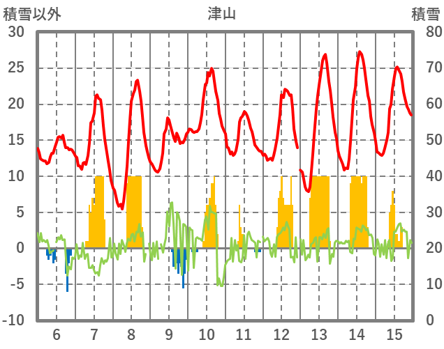 | 日 | 時 | 気温 | 降水 | 風向/風速 | 日照 | 積雪 | 降雪 |