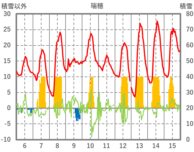| 日 | 時 | 気温 | 降水 | 風向/風速 | 日照 | 積雪 | 降雪 |