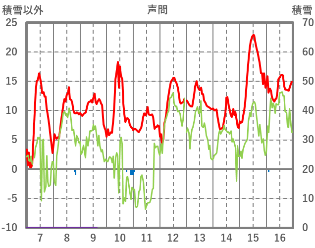 | 日 | 時 | 気温 | 降水 | 風向/風速 | 日照 | 積雪 | 降雪 |