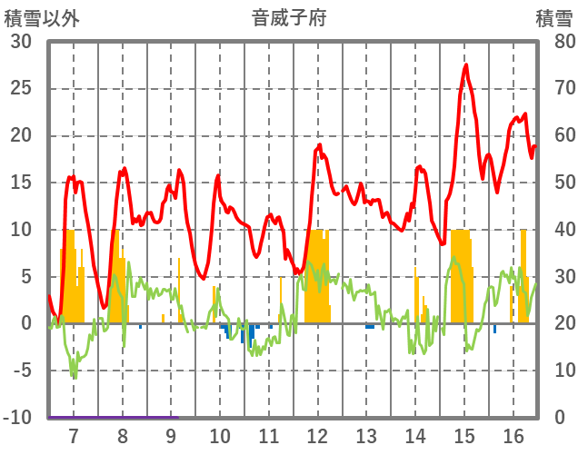 | 日 | 時 | 気温 | 降水 | 風向/風速 | 日照 | 積雪 | 降雪 |