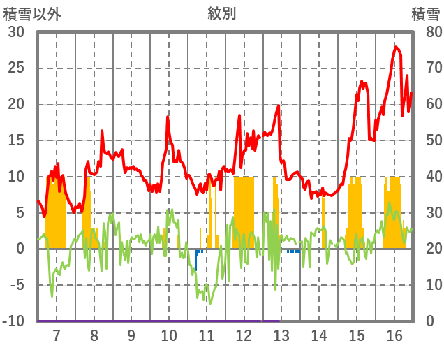 | 日 | 時 | 気温 | 降水 | 風向/風速 | 日照 | 積雪 | 降雪 |