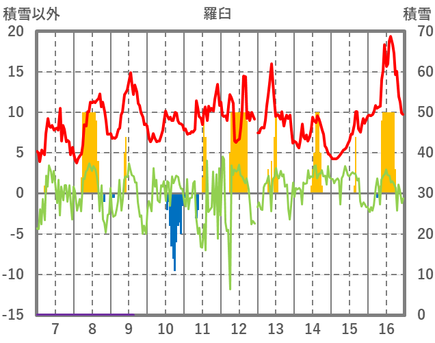 | 日 | 時 | 気温 | 降水 | 風向/風速 | 日照 | 積雪 | 降雪 |