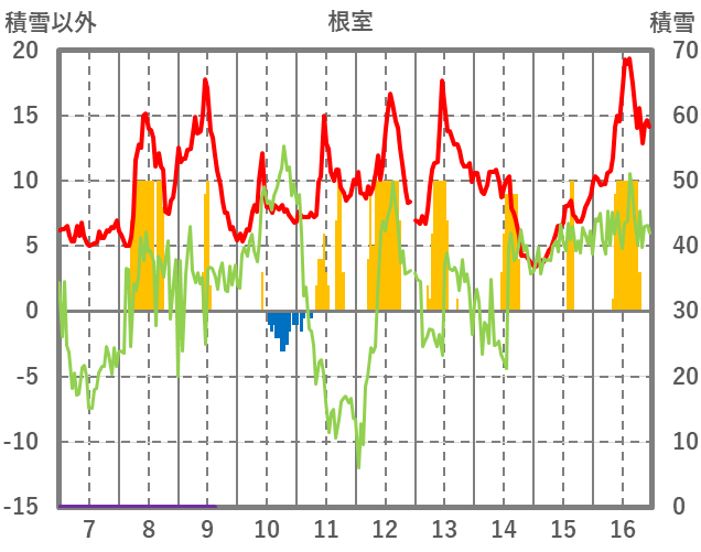 | 日 | 時 | 気温 | 降水 | 風向/風速 | 日照 | 積雪 | 降雪 |