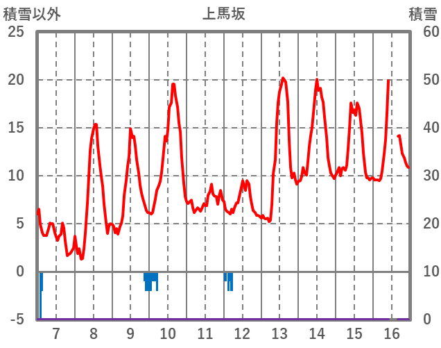 | 日 | 時 | 気温 | 降水 | 風向/風速 | 日照 | 積雪 | 降雪 |